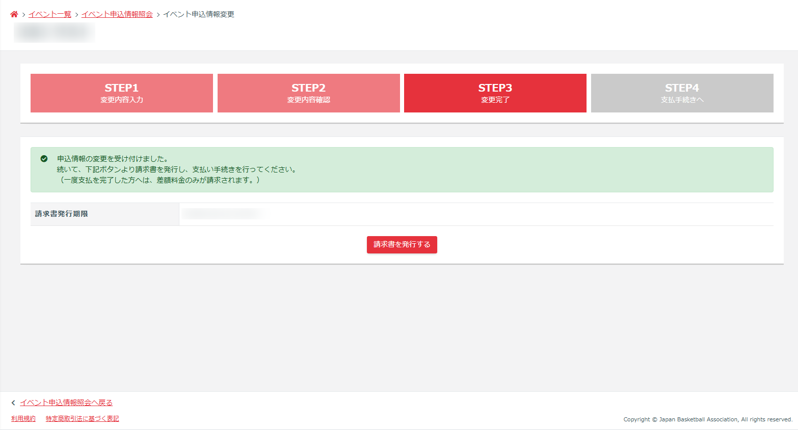 申込料金の変更によって追加の支払いが生じた場合は、期限内にお支払いを行ってください